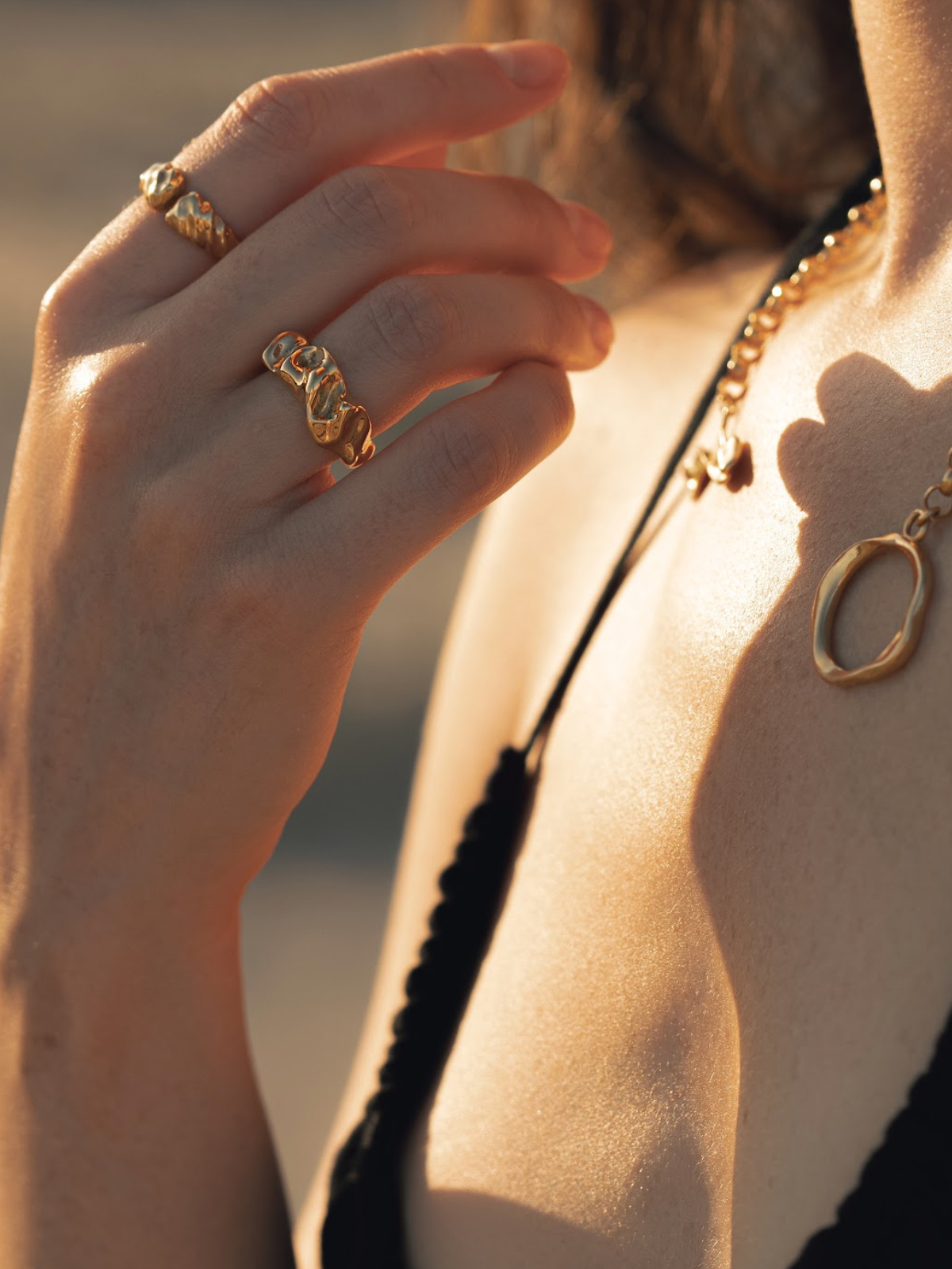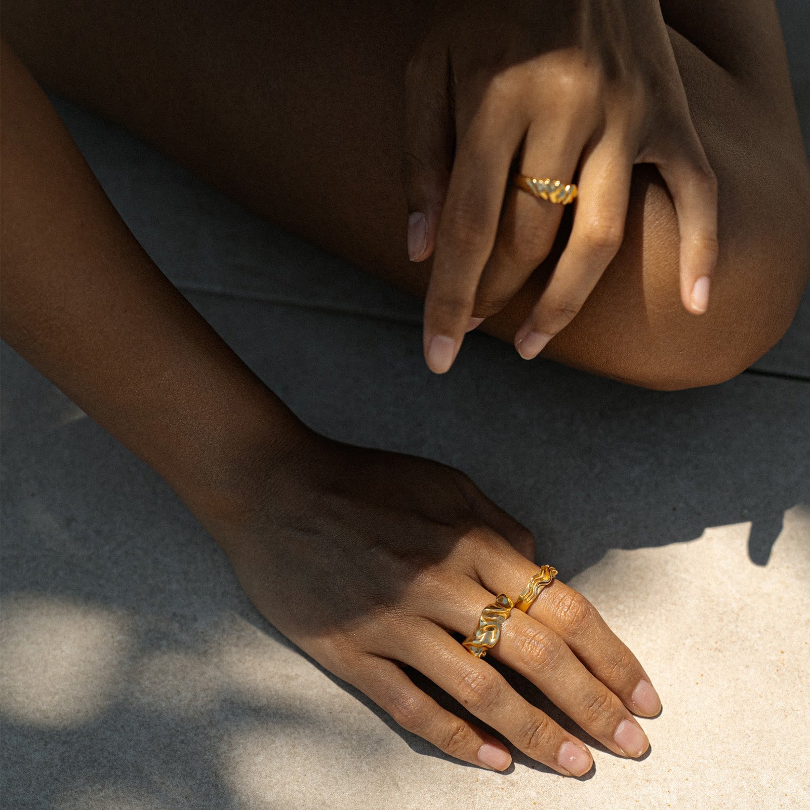 Organiczne kształty, które otulają palec niczym pamiątka znaleziona na plaży. Pierścionki MARAI to osobiste symbole chwil wartych zapamiętania.