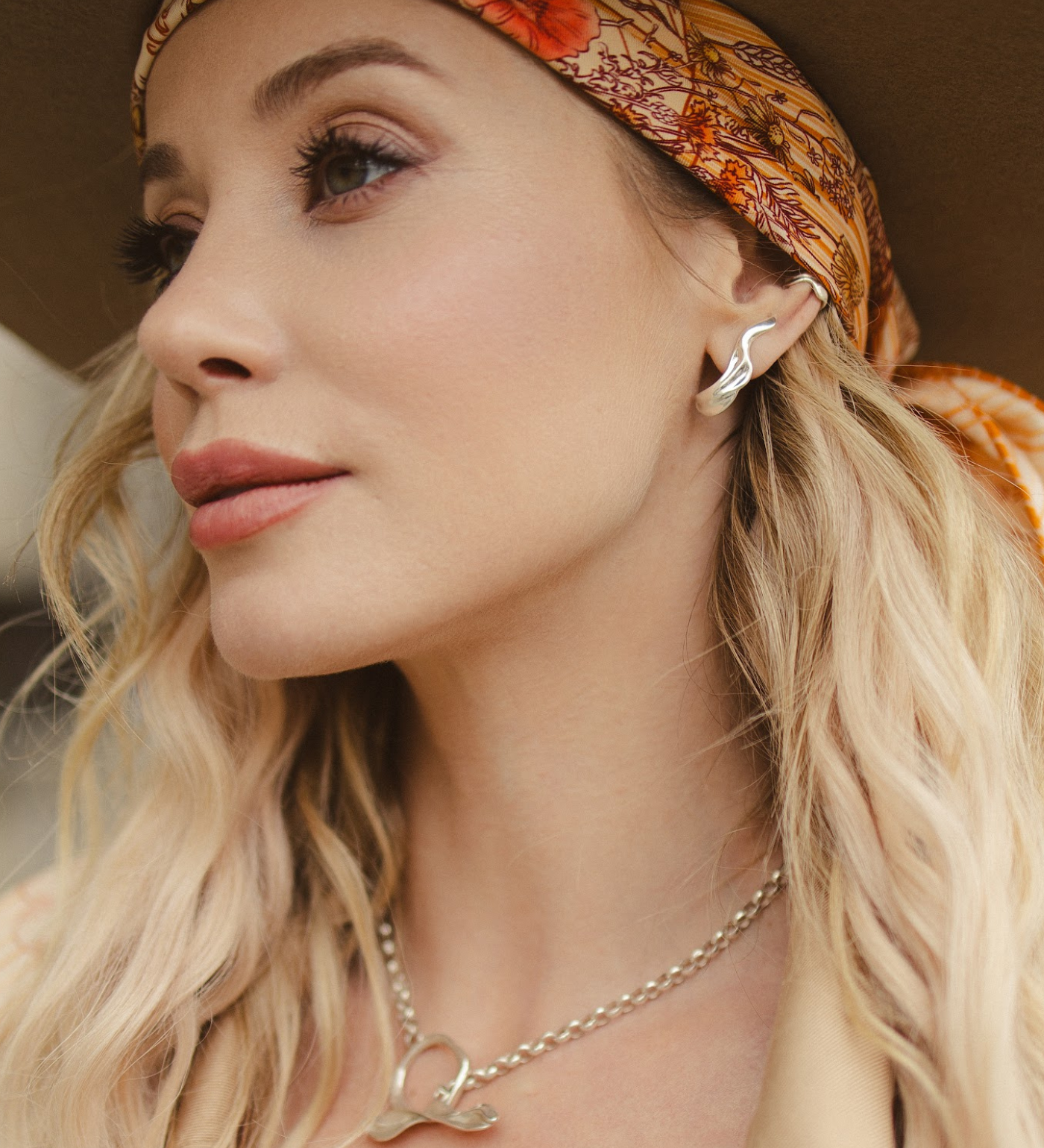 Subtelne, ale charakterne kolczyki MARAI to małe przepływy emocji – inspirowane ruchem wody i nieregularnością natury. Nasze kolczyki tworzymy ze srebra, pozłacanego srebra lub złota.
